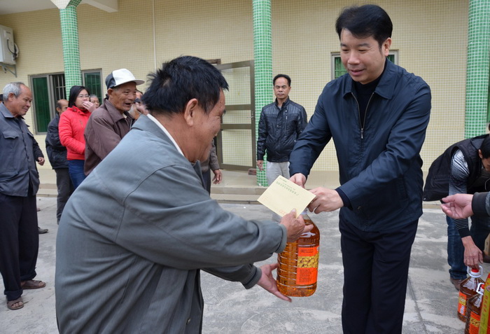 挂任点电白区南海街道办霞里管区慰问困难群众,并送上节日祝福和慰问品。