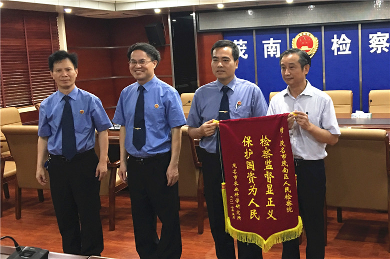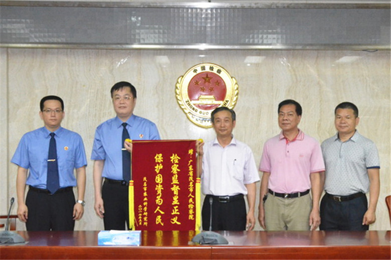 近日,广东省第十二届人大代表、茂名市农业科学研究所所长叶学林带领该所的班子成员,先后到茂名市人民检察院、茂南区人民检察院赠送锦旗,感谢两级检察院认真履职,保护国有资产。