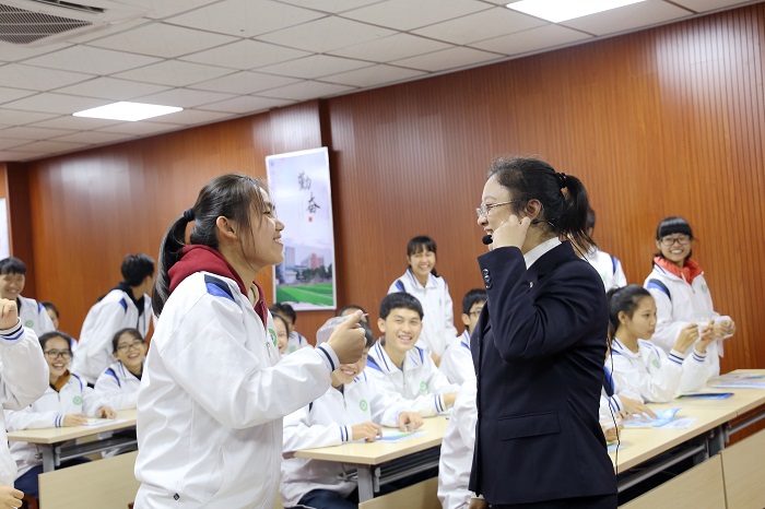 茂名市检察院巡讲团讲师陈静思和同学们现场互动