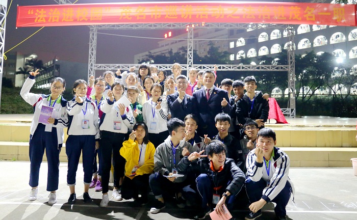 2017年12月14日晚,由茂名市检察院主办,茂名市第一职业技术学校承办的“法治进校园”巡讲活动在茂名市第一职业技术学校的大操场举行。茂名市第一职业技术学校校长助理刘汉、茂名市检察院刑事执行检察科科长郭剑锋、“法治进校园”巡讲团讲师黄玮迪及未检办成员、茂名市第一职业技术学校2000多名师生参加了活动。本次的巡讲活动由郭剑锋科长主持,共有三项议程,分别是:启动仪式、法制讲座和课堂小结。启动仪式上,刘汉校长助理、郭剑锋科长分别致辞。才课堂小结中,刘汉校长助理对本次法制讲座给予了高度的评价,并要求同学们认真学习课堂上的法律知识,做到知法、懂法、守法。郭剑锋科长也结合办案实践,告诫同学们不要触碰法律的高压线,更不要跨越法律的底线。