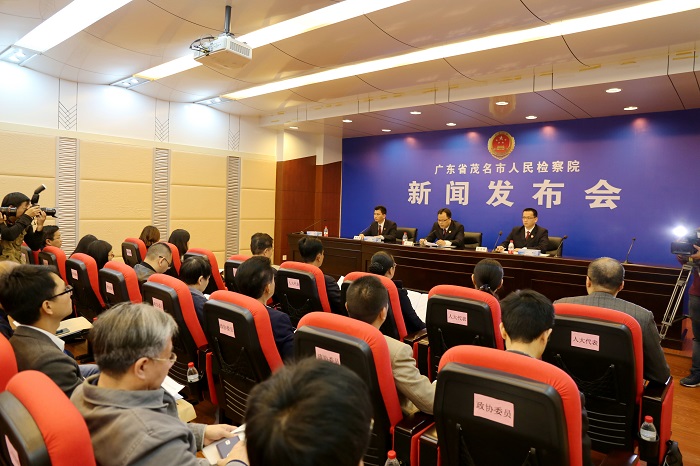12月13日上午,茂名市检察院召开新闻发布会通报公益诉讼工作情况。茂名市检察院党组成员、副检察长、新闻发言人刘戈出席会议,民行科科长容慧辉介绍有关情况,新闻发言人助理、民行科副科长熊麒麟主持发布会。茂名市电视台、茂名日报、茂名晚报等新闻媒体和部分人大代表、政协委员、人民监督员、特约检察员应邀出席新闻发布会。
