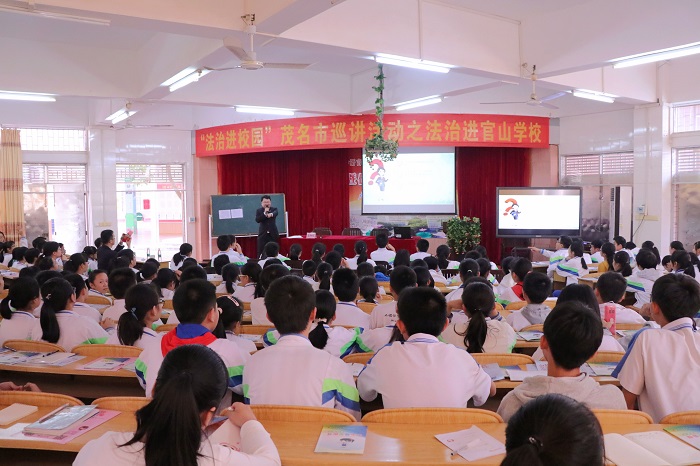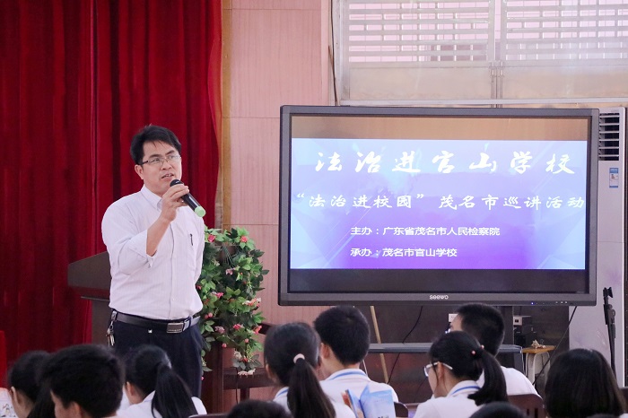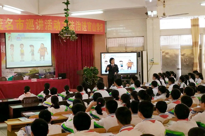 为实现法制巡讲在官山学校初中部的全面覆盖,应官山学校的要求,茂名市检察院派出了“法制副校长”、案件管理科科长麦海泓,巡讲团讲师杨秋玲和谢中晖在该校连续开展三场法制讲座。