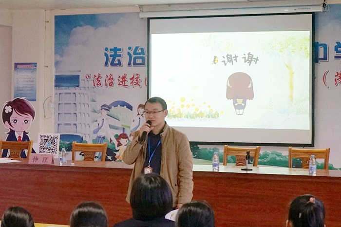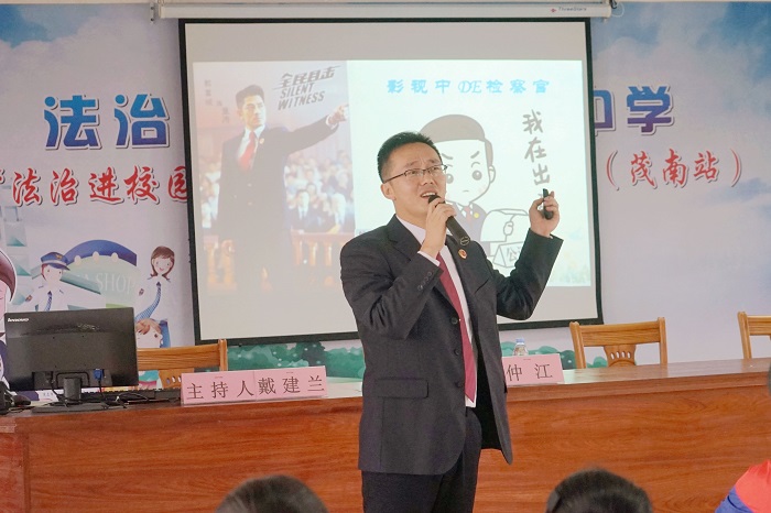 茂名市检察院未检办负责人仲江为现场师生授课