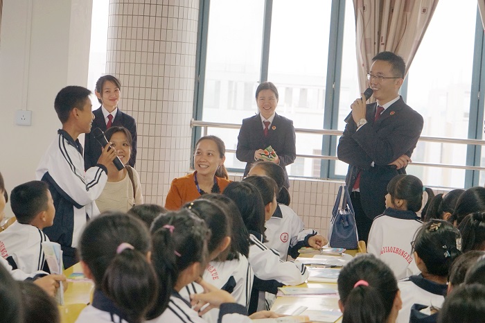 茂名市检察院巡讲团工作人员为参与互动的同学赠送纪念品
