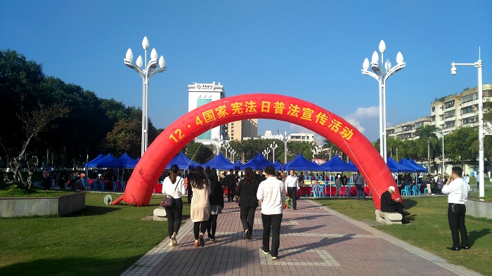 12月4日是国家宪法日,12月的第1周是“法治广东宣传教育周”。茂名市委依法治市办、茂名市普法办联合市委组织部、市委宣传部、市司法局等市普法领导小组成员单位以及相关执法部门,于“12·4”国家宪法日当天,在市主城区组织开展大型现场普法宣传和法律咨询活动,以实际行动学习贯彻党的十九大精神,增强全民法治观念,弘扬宪法精神,推动全社会不断提高宪法意识。
