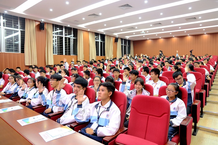 12月1晚,茂名市检察院“法治进校园”巡讲团在市检察院未检办负责人仲江的带领下走进茂名市第十六中学北校区,为该校300多名师生带来法治讲座,茂名市第十六中学主管北校区的副校长曾杰才、政教处主任刘伟锋参加此次活动并发表讲话。茂名市检察院监察室负责人、“法治进校园”巡讲团讲师许欢明为同学们带来法治讲座——《用法律守护青春》。许欢明讲师针对高中生身心发育特点,结合有奖问答活动和游戏,为现场同学生动的讲述了青少年易发多发的犯罪情况,并通过观看视频、朗读信件等方式深刻阐述了青少年走上犯罪道路的原因,教育同学们要拒绝不良行为,做一名懂法、学法、守法的中学生。整个活动内容精彩丰富,课堂气氛轻松热烈,取得良好的法治宣传效果。讲座结束后,茂名市检察院“法治进校园”巡讲团为该校赠送2000本由市检察院印制的《远离犯罪,珍惜青春年华》普法书籍。