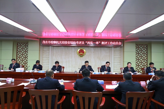 吴学翔科长传达了全市2017年度迎接综治工作(平安建设)及法治广东建设考评动员会和全市两度一率分析研判会会议精神及茂名市检察院《关于我市检察机关加强综治工作迎接省委政法委考评的通知》文件精神。卢智琼同志传达了茂名市委政法委《关于做好迎接省综治委对我市2017年度综治工作(平安建设)检查考评准备工作的通知》文件精神,解读了2017年度省综治工作考评办法和考评标准。与会同志就如何做好综治工作考评及提升检察机关“两度一率”进行了座谈。杨敦副检察长也高度重视综治工作考评和“两度一率”测评工作,要求全市反贪、反渎、预防干警切实履行职能,根据院党组的决定全力配合做好迎检工作。