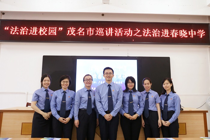 活动结束后,茂名市检察院“法治进校园”巡讲团成员合影留念