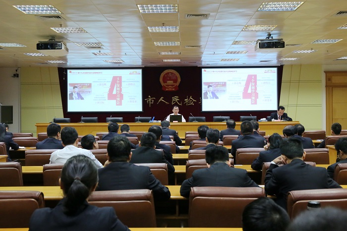 为学习贯彻好党的十九大精神,12月29日上午,茂名市检察院在十六楼会议室举行党的十九大精神专题宣讲会。茂名市委宣讲团成员,茂名市社科联党组成员、专职副主席陈文钦同志应邀为我院全体干警职工作题为《贯彻新思想,开启新征程》的十九大精神宣讲报告。宣讲会由茂名市检察院专职委员丁永标主持。
