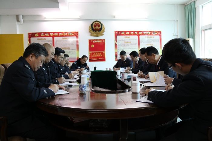 座谈会上,罗海明副局长欢迎朱冠恒副检察长和茂名市检察院检查组到看守所检查指导工作,并从制度建设、队伍建设、设施建设等三方面向检查组介绍看守所的总体工作情况。茂名市第一看守所梁军教导员、黄邦志副所长从监区管理、与驻所检察室沟通配合以及存在的问题等方面做补充汇报。