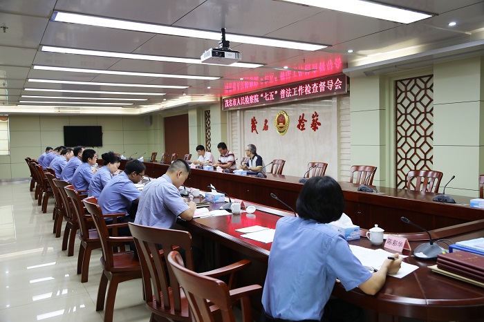 9月12日下午,茂名市“七五”普法工作第五督导组一行到茂名市检察院检查督导“七五”普法工作并召开座谈会。市检察院党组成员、副检察长刘戈及相关部门负责人参加会议。