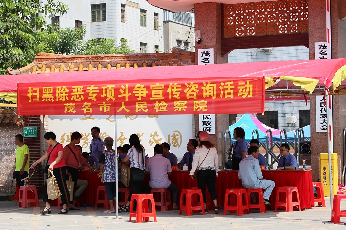 为深入推进扫黑除恶专项斗争开展,切实提高群众对扫黑除恶工作的知晓率,进一步发动群众主动参与,共同营造全社会扫黑除恶的浓厚舆论氛围,9月11日上午,茂名市检察院在综治联系点金塘镇开展扫黑除恶专项斗争现场宣传咨询活动。
