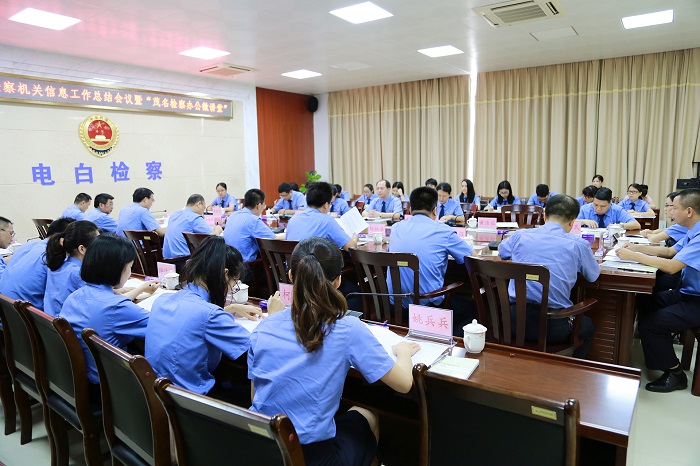 7月23日上午,茂名市检察院在电白区检察院召开2017年度茂名市检察机关信息工作总结会议暨第二期“茂名检察办公微讲堂”。市检察院党组成员、副检察长黄兵国,办公室相关同志,以及各基层院分管领导、办公室负责人、信息员和2017年度检察信息工作先进个人参加会议。