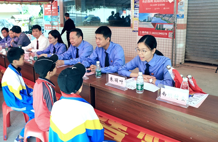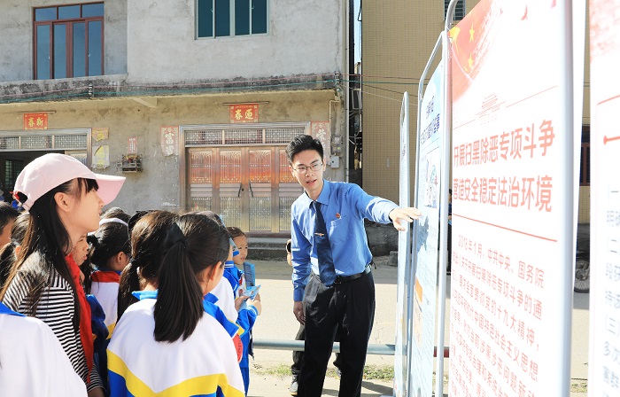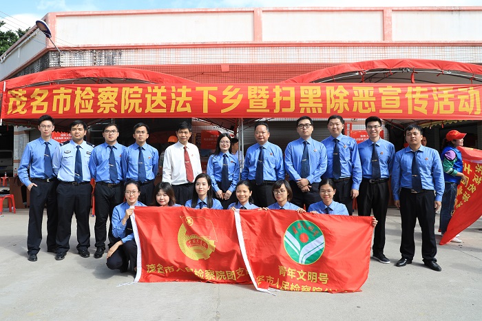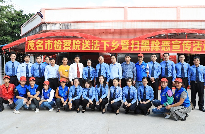 12月5日上午,茂名市检察院联合电白区电城镇政府到电城镇南坝村开展送法下乡暨扫黑除恶专项斗争宣传活动。市检察院党组成员、政治处主任肖羽,市检察院派驻南坝村委会第一书记邱光华,侦监科科长吴学翔和多名青年干警,以及南坝村委会干部、群众、师生等500多人参加了活动。