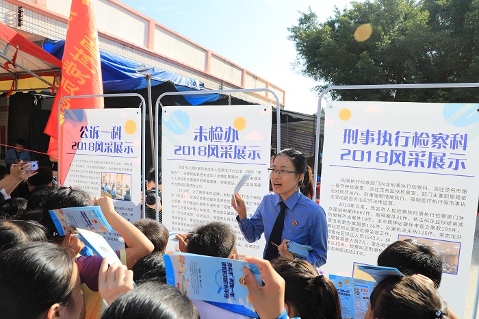 检察干警在现场热心地解答群众疑问,讲解相关法律知识,提供相关法律咨询,并结合展板介绍检察机关的职能及办理案件的具体过程,讲述扫黑除恶专项斗争的重要性,同时向群众和学生派发扫黑除恶、禁毒普法宣传单和宣传手册,向群众讲解“两度一率”,让群众进一步认识到毒品的巨大危害性。