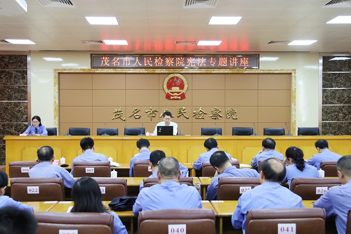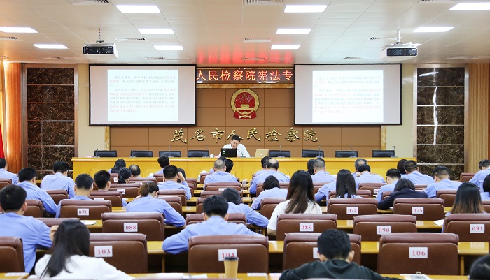 为进一步推动宪法学习宣传和贯彻实施,弘扬宪法精神,维护宪法权威,履行宪法职责, 12月3日下午,茂名市检察院举办宪法专题讲座,邀请广东石油化工学院文法学院院长、教授马波作题为“宪法修改的重大意义和主要内容”的专题讲座,市检察院全体人员参加了学习。讲座由市检察院党组成员、政治处主任肖羽主持。