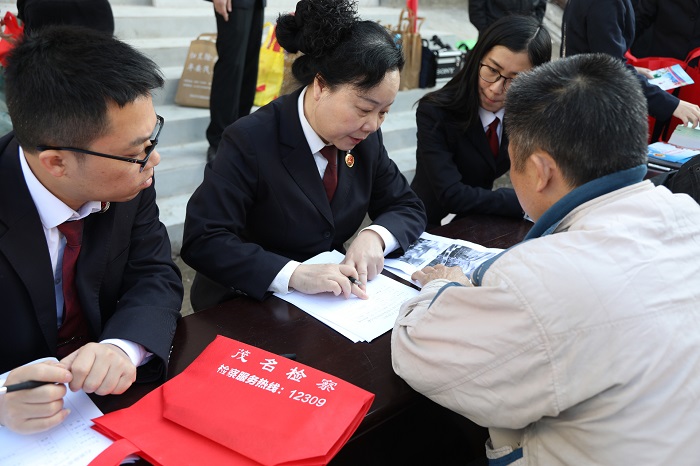 宣传活动过后,茂名市检察院和化州市检察院的控申干警来到平定镇旺竹村,就陈某宝刑事申诉暨国家司法救助案进行公开答复,将答复会开到群众家门口,以公开促公正的同时,通过以案释法的形式进行普法宣传。