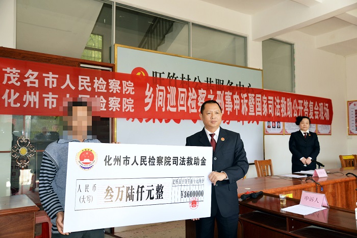 公开答复会上,该案承办检察官首先陈述案件办理情况,并宣读审查结果。接着申诉人及承办检察官围绕案件焦点问题进行问答释疑,受邀代表发表评议意见。最后,化州市检察院宣布对陈某宝进行国家司法救助的决定,并向其发放司法救助金。