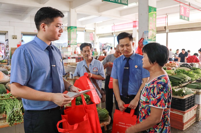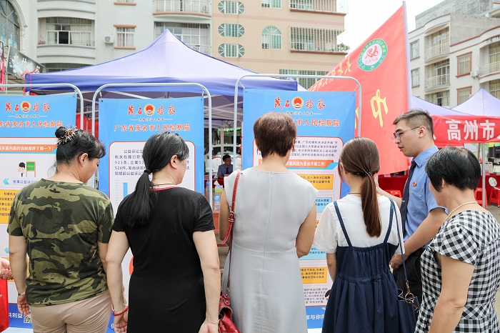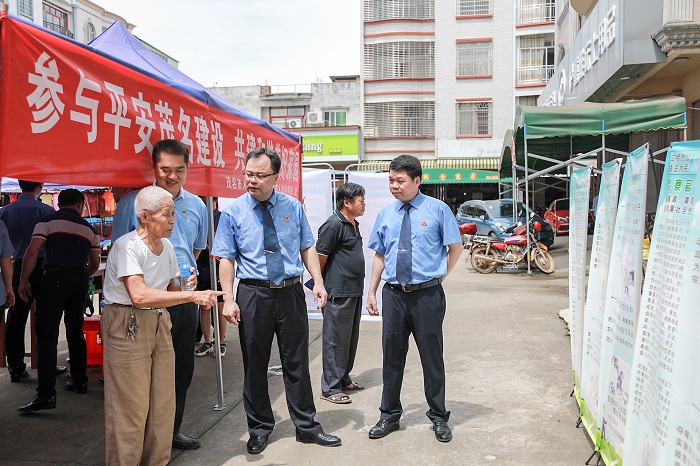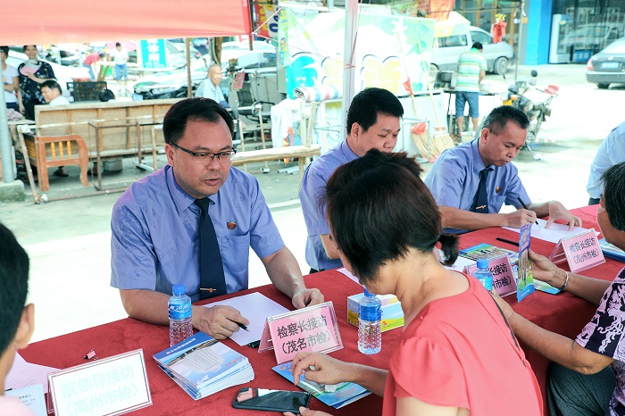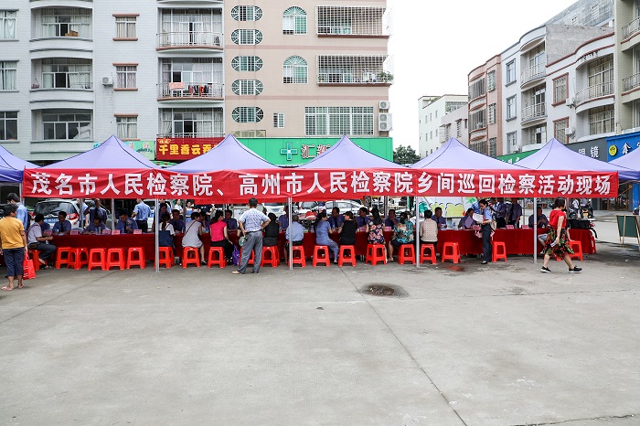 7月8日上午,茂名市检察院联合高州市检察院开展第四期乡间巡回检察活动,走进高州市大井镇进行法治宣传。市检察院党组成员、副检察长刘戈,高州市检察院党组书记、检察长吴帝镗现场接受群众来访。