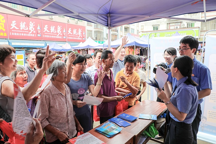 联合乡间巡回检察活动小组在大井镇大利综合市场设立宣传点,通过悬挂横幅、发放宣传资料和物品、讲解宣传展板、现场解答法律咨询等方式,向群众重点宣传检察机关扫黑除恶、两度一率、12309检察服务、司法救助、公益诉讼、未成年人检察等方面内容,面对面零距离为群众提供法律帮助,化解矛盾纠纷,释疑解惑。同时干警们走访附近商铺,发放宣传资料,邀请商户到宣传点参加法治知识有奖问答活动。