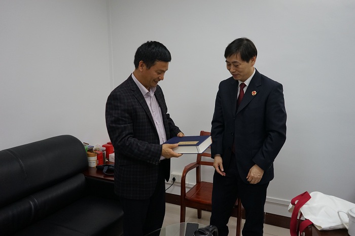 向何江赠送《茂名市检察志》
