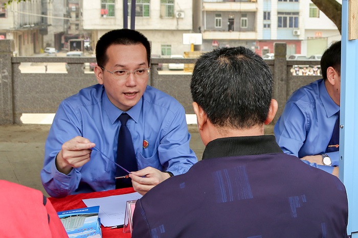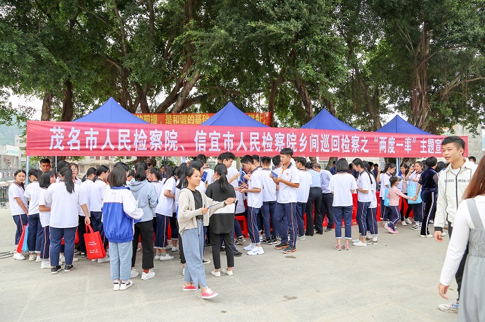 11月13日上午,茂名市检察院联合信宜市检察院开展第五期乡间巡回检察活动,走进信宜市怀乡镇进行法治宣传。市检察院副检察长沈学生,信宜市检察院党组书记、检察长容慧辉现场接受群众来访。