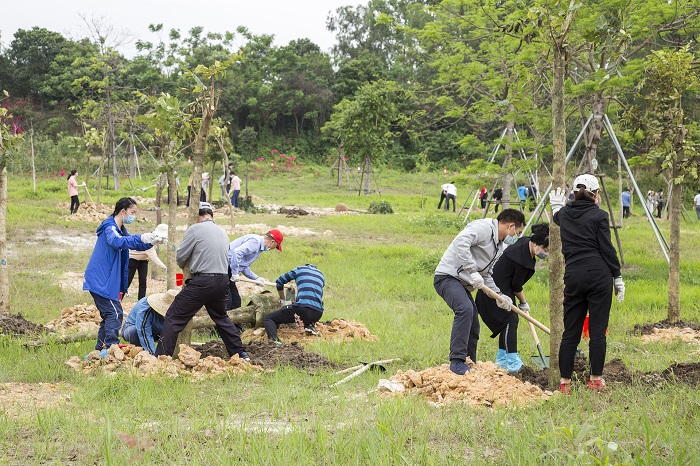 在市检察院班子成员的带领下,干警们按照植树方案的分工,到划分好的植树区域挖坑、栽树、填土、浇水。大家互相协作配合,气氛活跃,植树现场一派热火朝天的景象。经过干警们一个多小时的奋战,50棵小叶紫薇树、海南红豆树、紫荆树、火焰树以及黄金熊猫树在“检察林”迎风矗立。