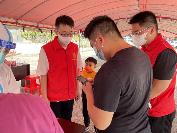 根据疫情防控指挥部工作安排,市检察院志愿者支援城南街道核酸检测点工作。在明确工作任务、熟悉工作流程、做好个人防护后,检察志愿者们迅速投入工作。引导群众有序排队、测量体温、查验粤康码、做好信息录入登记、引导正确采样……检察志愿者与医护人员并肩作战,全力以赴助力核酸检测工作顺利高效开展。