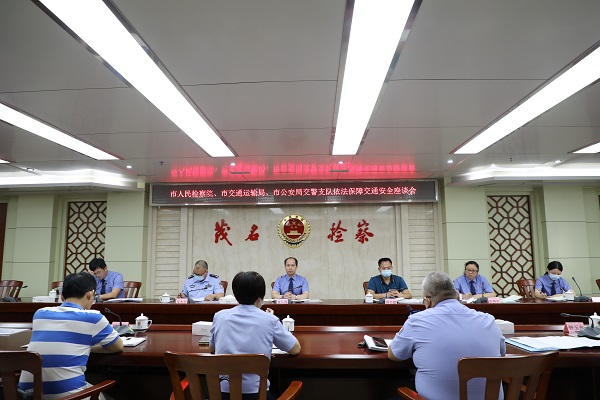 为全面深化行政检察监督依法保障交通安全,进一步加强道路交通安全综合治理,促进道路交通管理依法行政,6月22日上午,茂名市检察院联合茂名市交通运输局、茂名市公安局交警支队在市院四楼会议室举行依法保障交通安全座谈会。市检察院党组成员、副检察长黄兵国,市交通运输局副局长、市公安局交警支队长龙木兴,市交通运输局三级调研员韩名蛟出席活动并作讲话。市检察院第四检察部、市公安局交警支队、市交通运输局的相关工作人员参加会议。