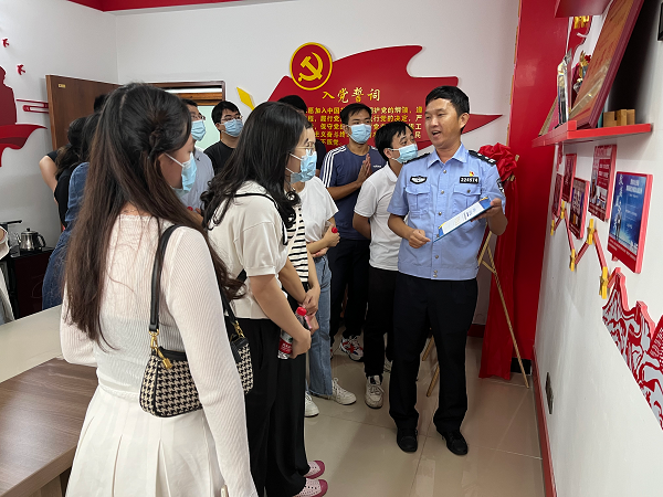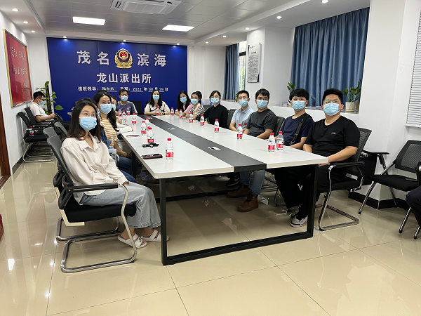 随后,青年干警们来到茂名市公安局滨海新区分局龙山派出所交流学习。龙山派出所作为茂名市公安机关模范基层单位之一,曾多次获得全国、全省突出荣誉。在所长钟伟国带领下,干警们参观了龙山派出所的党建阵地、信息中心,听取该所党建和团建经验介绍。青年干警们和龙山派出所青年突击队员们进行了检警交流座谈,双方结合日常工作实际和当日活动情况,就如何树立正确的人生观和价值观,如何以扎实的工作成绩建功新时代发表了自己的看法,提出工作意见和建议。