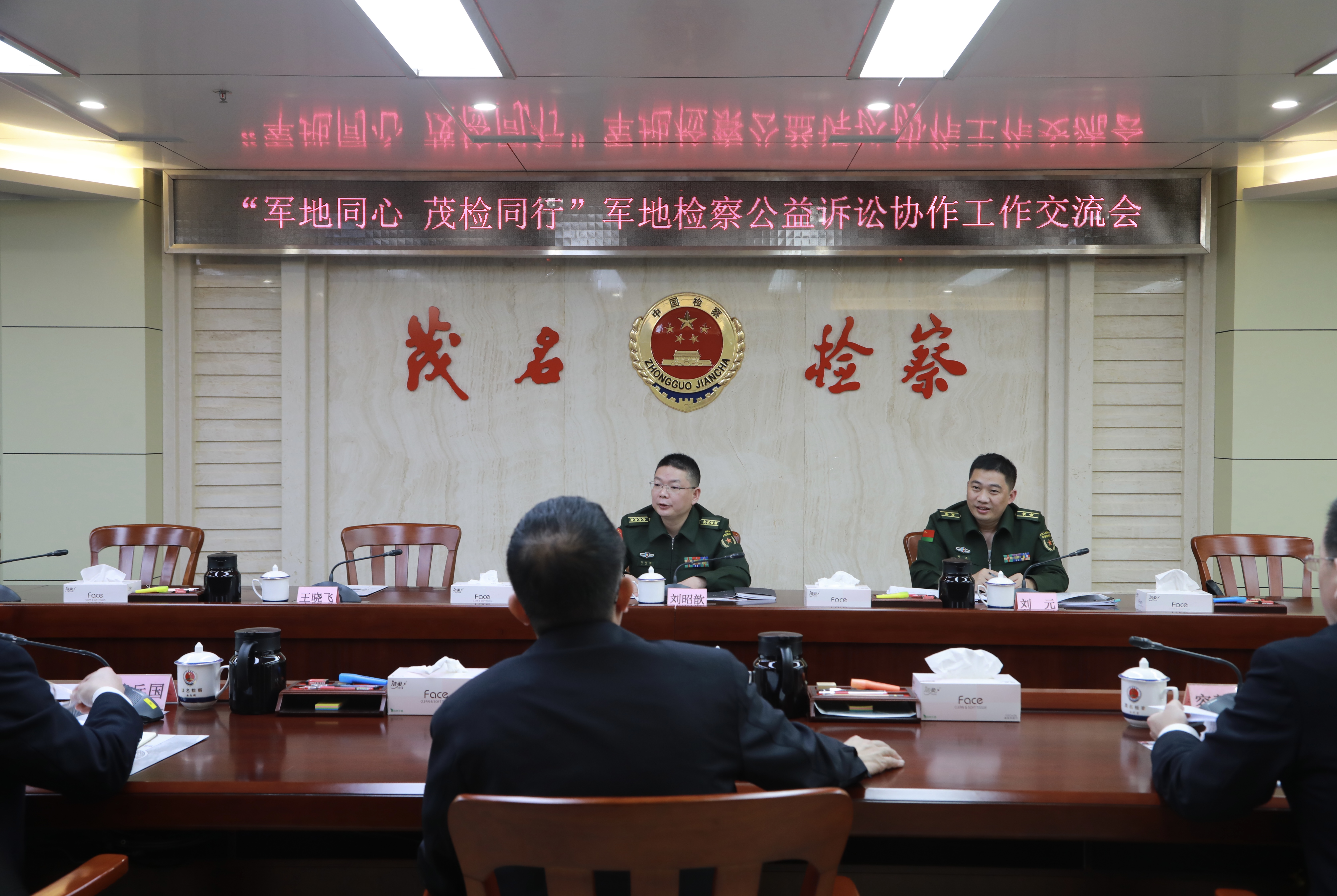 王辉华检察长对刘昭歆一行的到来表示热烈欢迎。王辉华检察长强调,军地检察公益诉讼协作工作只有“进行时”,没有“完成时”,全市检察机关将进一步提高政治站位,增强军地检察公益诉讼协作意识,自觉站在党和国家、军队建设全局的高度,不断更新司法理念,着力提升工作的质量和效果;进一步强化协作成效,认真办好各类涉军案件,为涉军案件办理开辟“快速通道”、“绿色通道”,确保涉军案件得到依法、高效、高质量的办理,切实维护驻茂军队军人军属合法权益和社会和谐稳定;进一步提升总结宣传水平,通过不断创新宣传方式、发布典型案例弘扬“军人尊严不容亵渎、军人军属合法权益必须维护”的社会正气,营造军地协作、军民团结良好氛围。