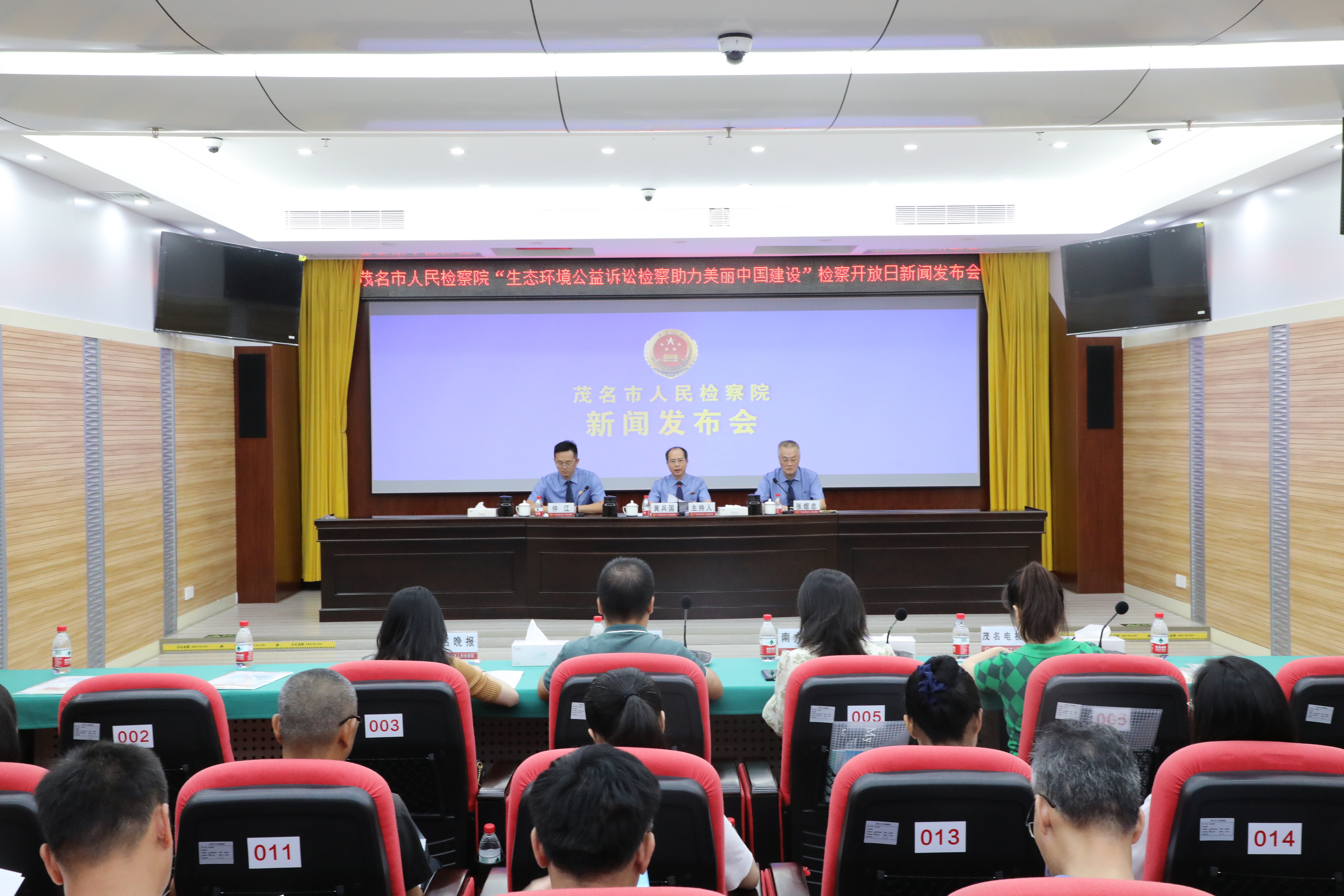 活动中,受邀人员参观了12309检察服务中心、案件管理中心和院史馆等场所,观看了检察公益诉讼工作专题片,近距离感受检察机关履职办案情况。随后,召开生态环境公益诉讼检察工作新闻发布会。茂名市人民检察院党组成员、副检察长黄兵国主持会议并通报全市检察机关生态环境公益诉讼检察工作情况,三级高级检察官张煜忠、第四检察部负责人仲江回答记者提问。