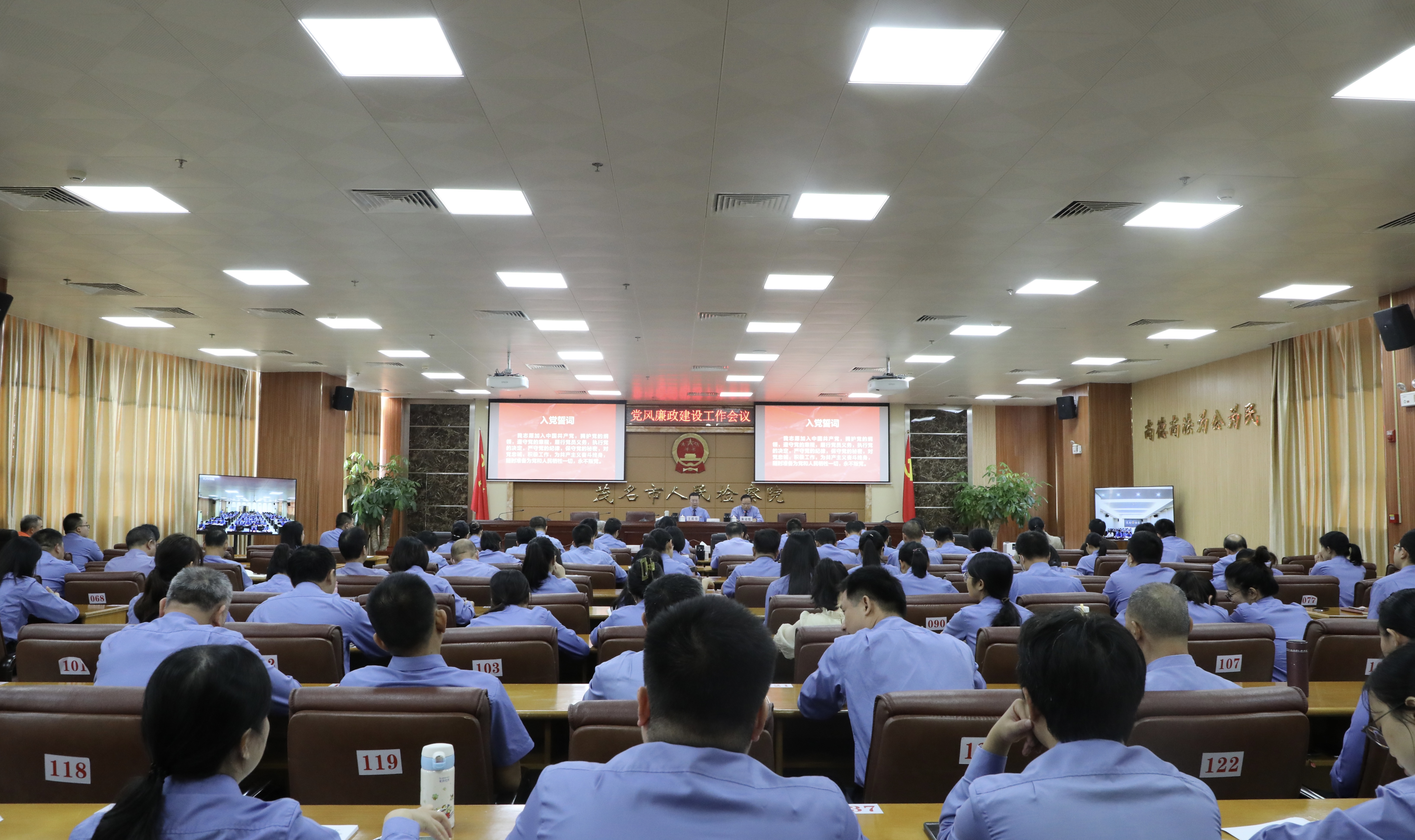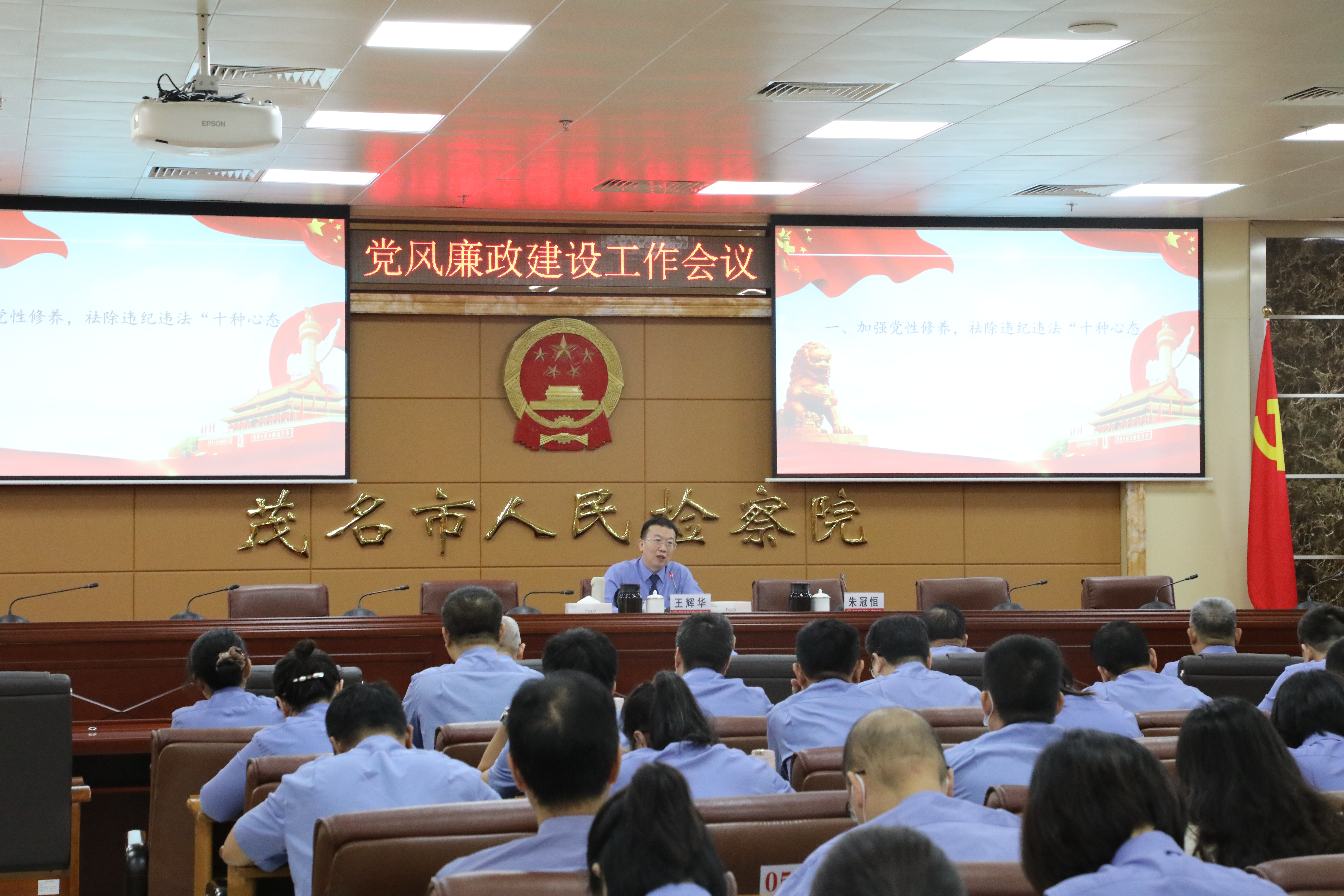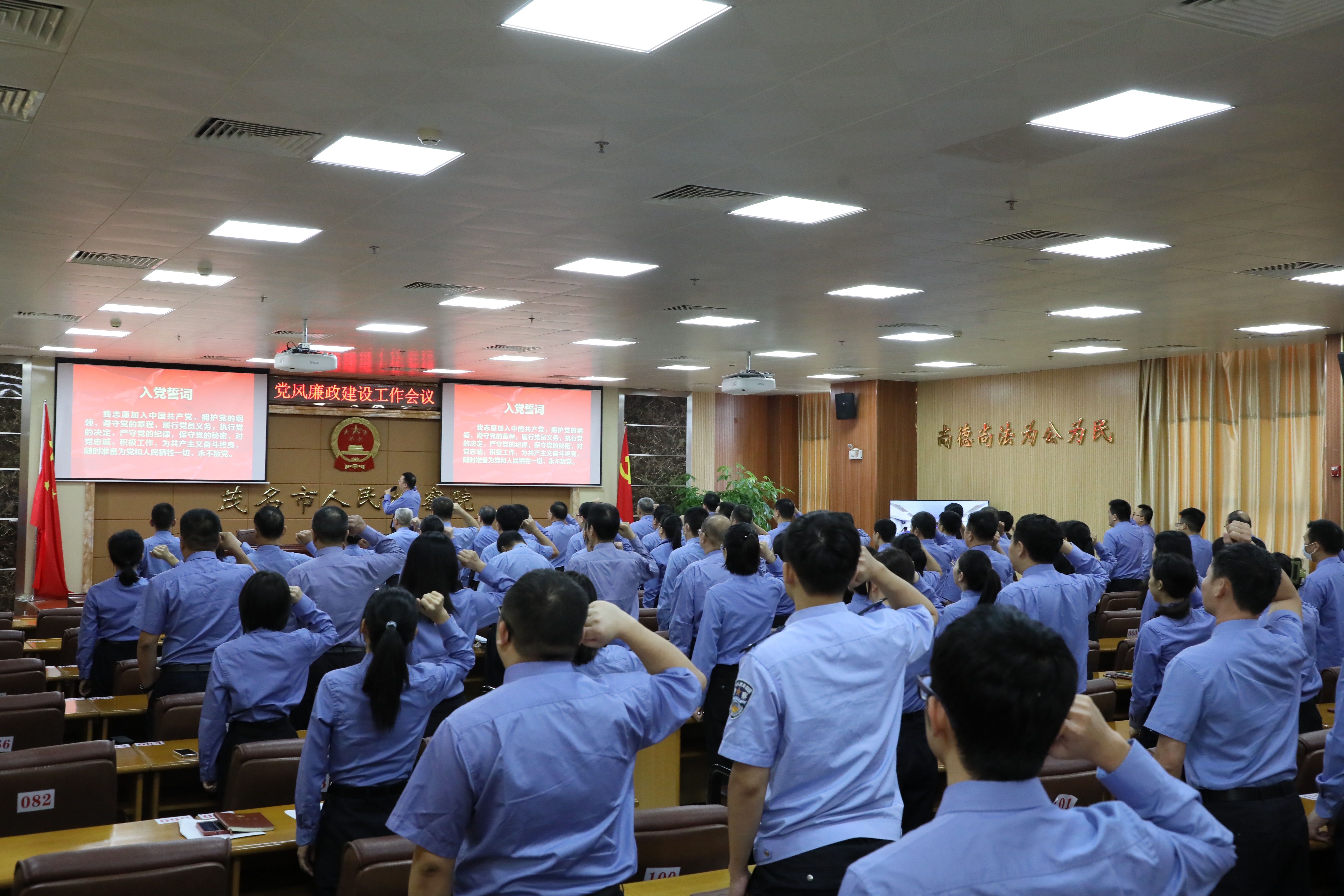 “我志愿加入中国共产党,拥护党的纲领,遵守党的章程,履行党员义务……”10月26日上午,茂名市人民检察院组织召开全市检察机关党风廉政建设工作会议,全体检察干警在市检察院党组书记、检察长王辉华的带领下,高举右手,重温入党誓词。市主题教育办联络四组李洋、陈春花等到会指导。
