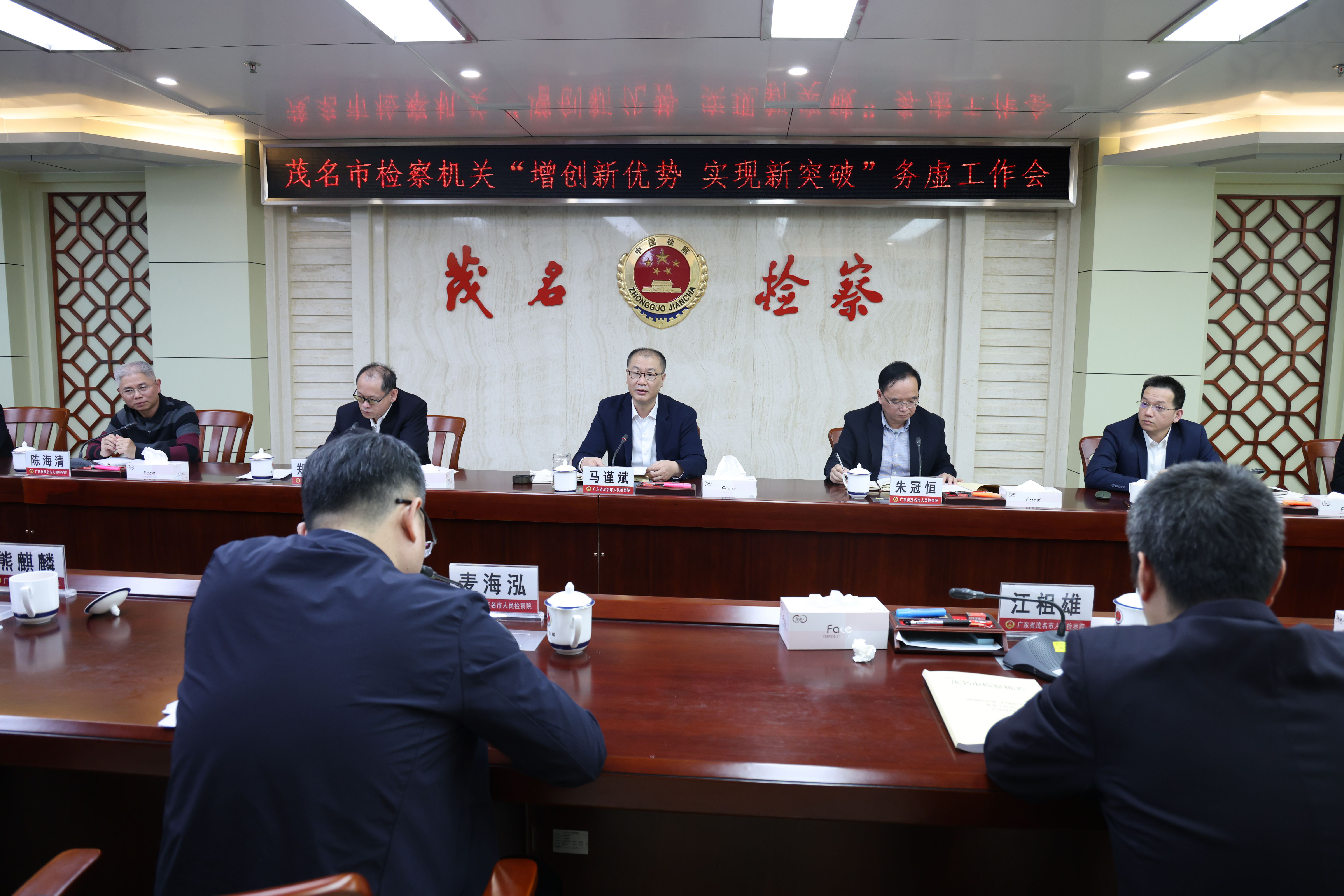 近日,茂名市人民检察院召开全市检察机关“增创新优势 实现新突破”工作务虚会。市检察院党组书记、检察长马谨斌出席会议并讲话。市检察院领导班子成员、各基层检察院检察长及市检察院各部门主要负责人参加会议。