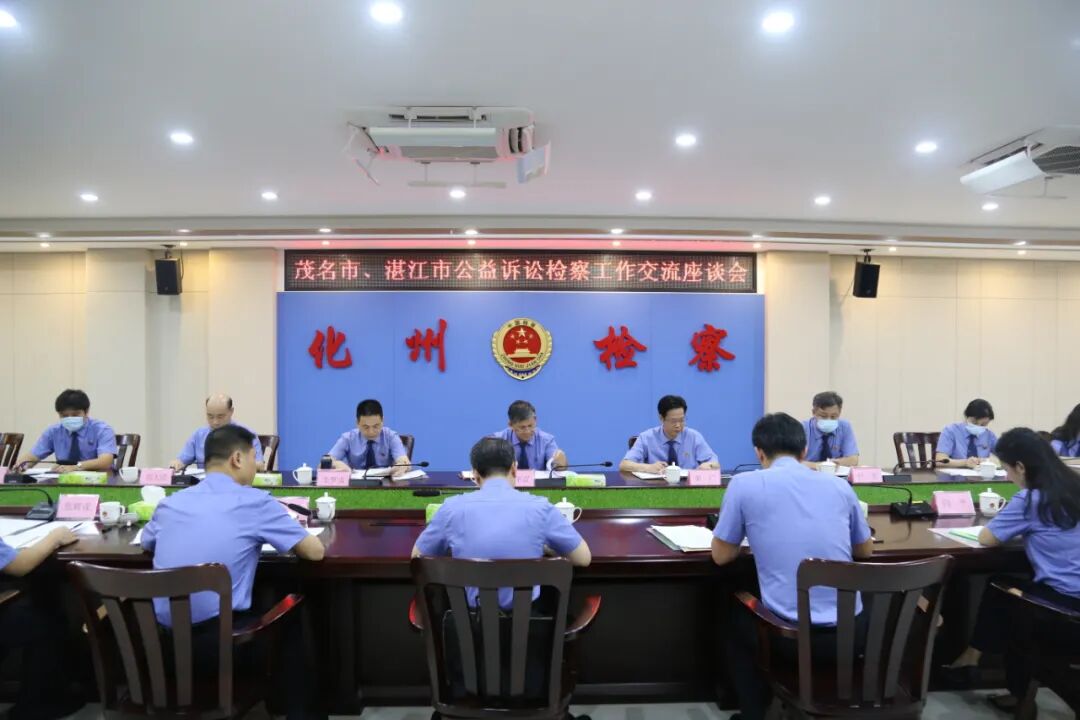6月30日下午,茂名市检察院、湛江市检察院建立鹤地水库生态环境保护司法协作框架协议暨公益诉讼检察工作交流座谈会在化州市检察院召开。茂名市检察院党组成员、副检察长黄兵国,湛江市检察院党组成员、副检察长易华富,湛江市检察院检委会专职委员、三级高级检察官梁广,化州市检察院党组书记、检察长吴劲,两地检察机关公益诉讼部门人员参加会议。