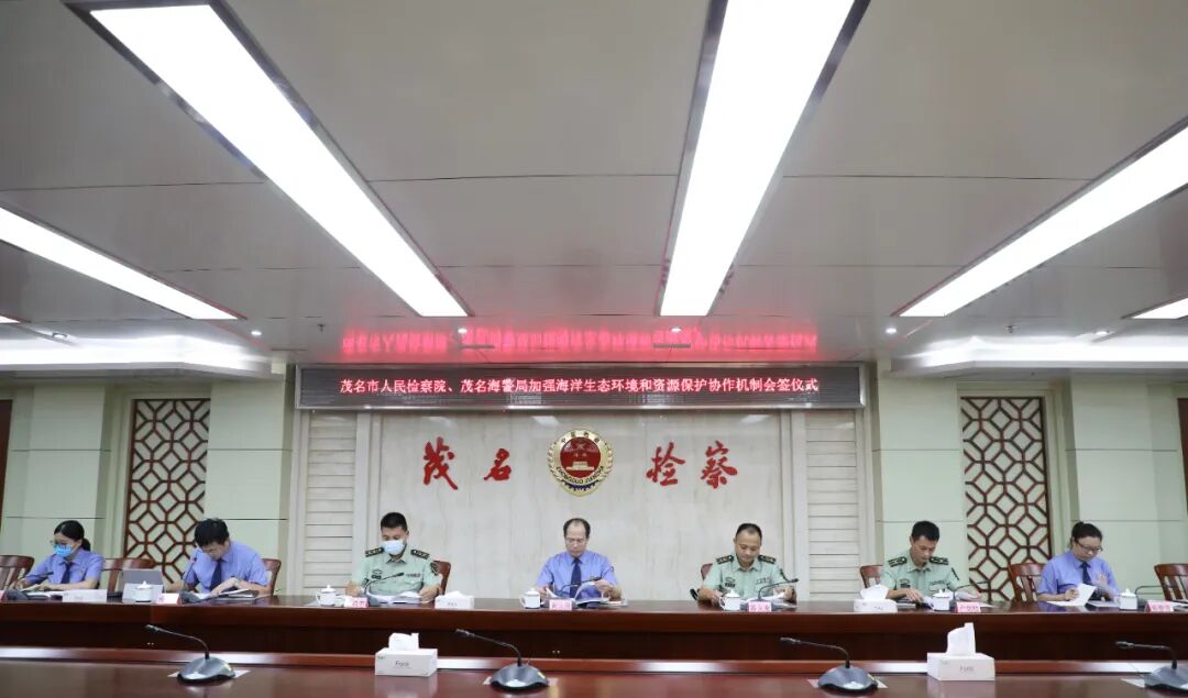为进一步加强茂名市海洋生态环境和资源保护领域执法与监督协作,充分发挥检察机关法律监督和海洋管理部门行政执法合力,促进依法行政、严格执法,维护国家利益和社会公共利益,6月22日下午,茂名市人民检察院、茂名海警局在市检察院召开加强海洋生态环境与资源保护座谈会暨《茂名市人民检察院 茂名海警局关于加强海洋生态环境与资源保护执法与法律监督协作机制》联签仪式。茂名市人民检察院党组成员、副检察长黄兵国,茂名海警局局长陈义宽出席活动并作讲话。参加活动的还有市检察院第四检察部、茂名海警局的相关工作人员。